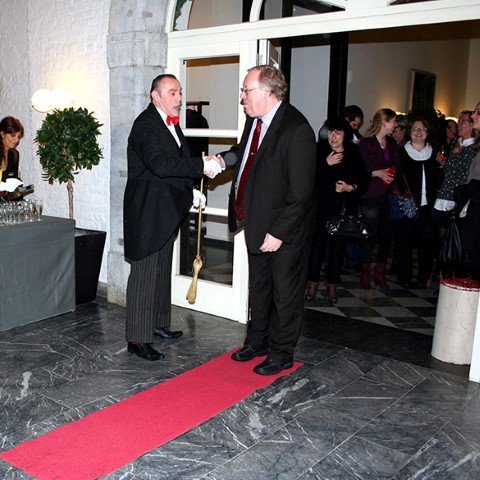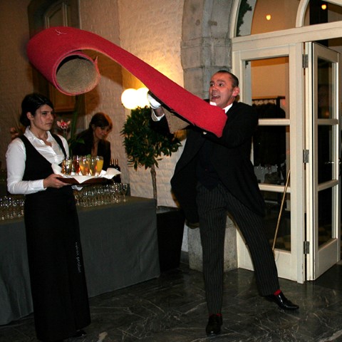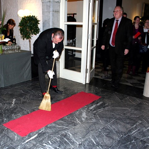 Zur stil- und humorvollen Begrüßung der Gäste. Mit rotem Teppich, Flusenbürste und charmanten Kommentaren.